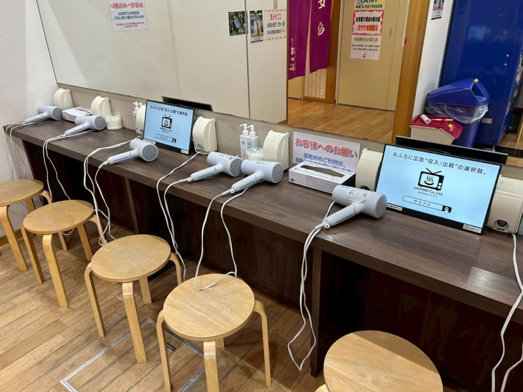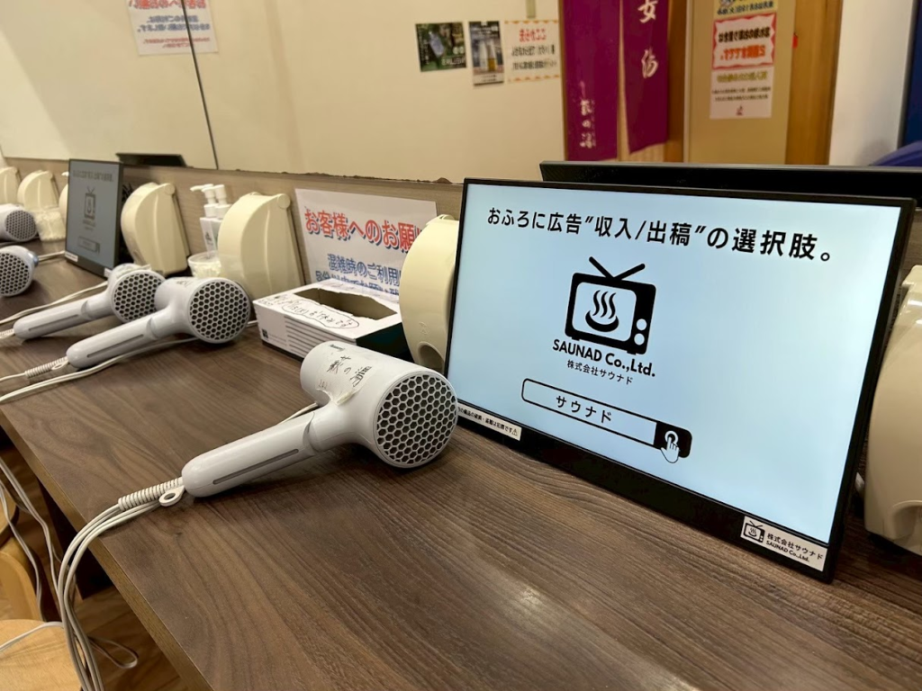 ひだまりの泉 萩の湯に設置しているデジタルサイネージ広告「ふろビジョン」の設置の様子をご紹介します。