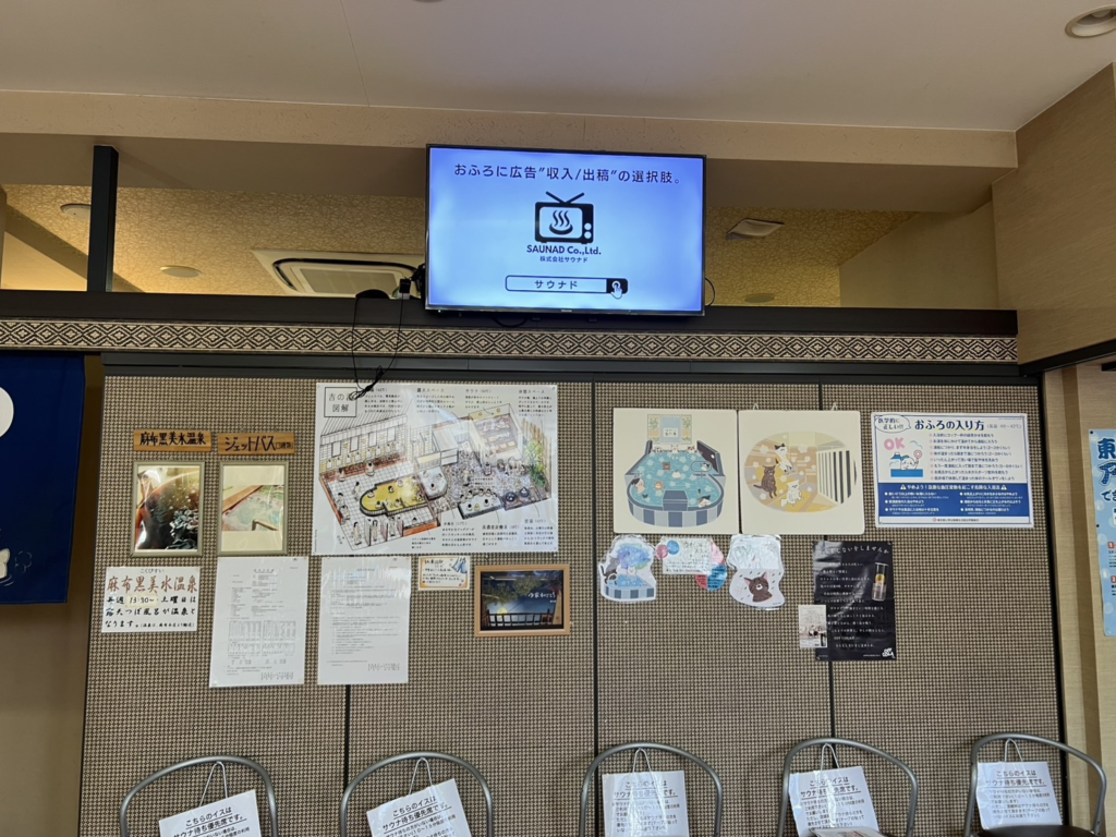 ゆ家 和ごころ 吉の湯|東京都杉並区 ゆ家 和ごころ 吉の湯に設置しているデジタルサイネージ広告「ふろビジョン」の設置の様子をご紹介します。 ○住所〒166-0015杉並区成田東1−14−7 ○アクセス京王井の頭線「永福町」駅よりバス。「松ノ木住宅」下車、徒歩5分 ○設置端末フロント:21.5インチモニター1台 温浴施設のデジタルサイネージ「ふろビジョン」とは 広い露天コーナーには高濃度炭酸泉、壷風呂(水、土は温泉)、コンフォートサウナ、水風呂があります。内風呂の強力ジェットバス、電気風呂も人気です。銭湯ランナー歓迎、荷物の一時預かり可能です。 WEB1010の紹介記事(マンガ)はこちら。インドアビューはこちら。 ゆ家 和ごころ 吉の湯の公式WEBサイト東京銭湯マップ|ゆ家和ごころ 吉の湯