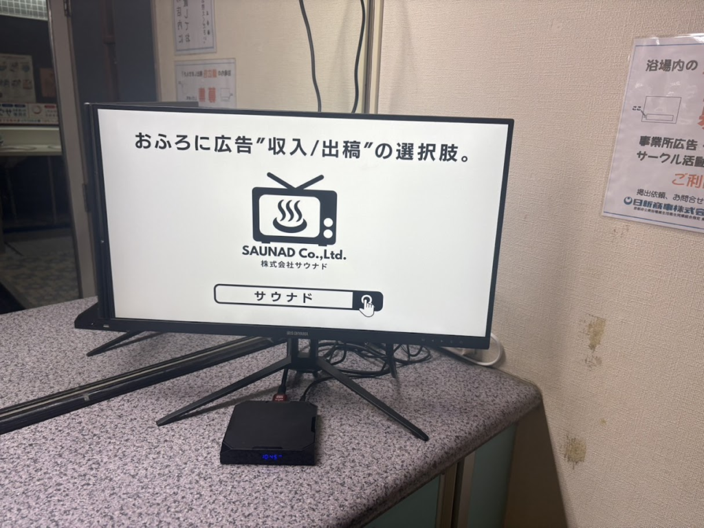五香湯に設置しているデジタルサイネージ広告「ふろビジョン」の設置の様子をご紹介します。