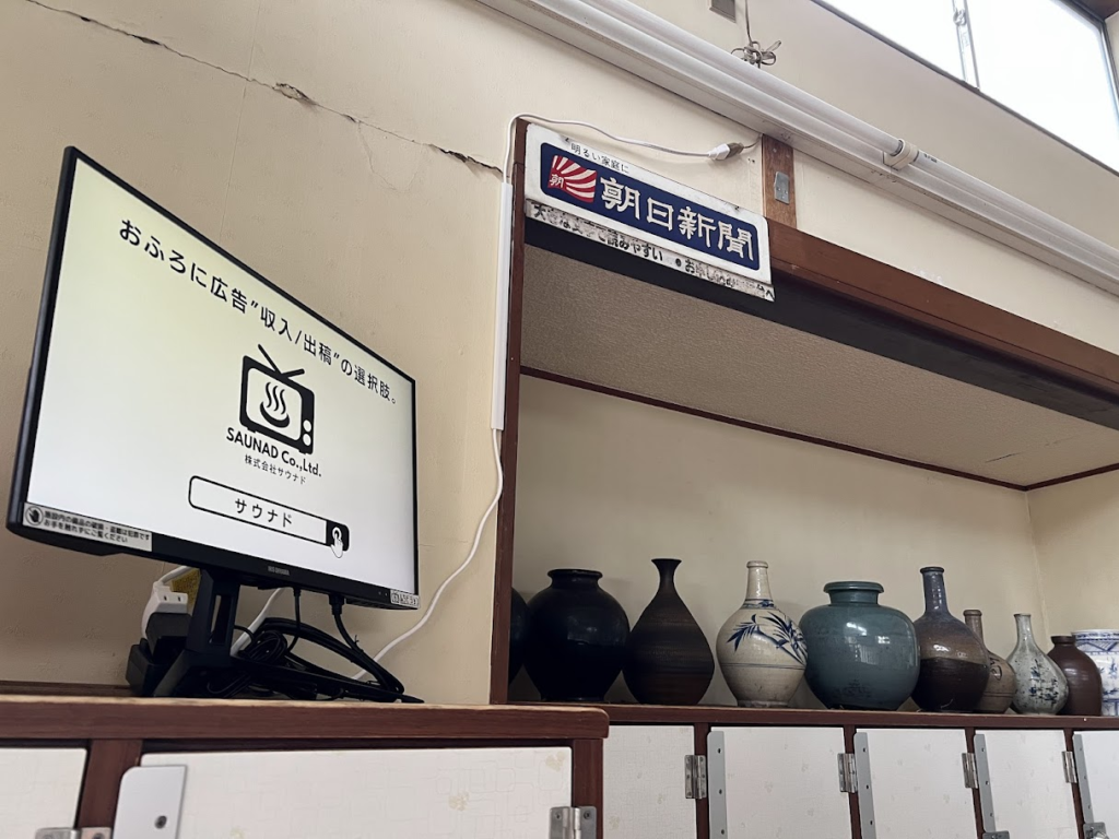 千歳湯に設置しているデジタルサイネージ広告「ふろビジョン」の設置の様子をご紹介します。