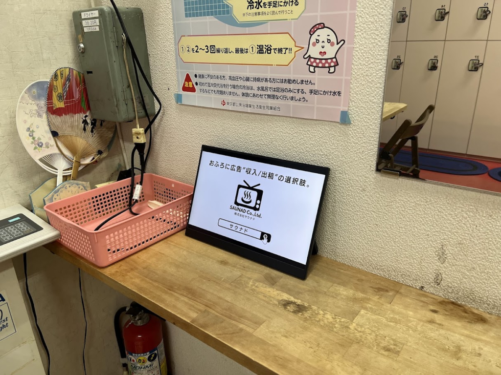 大黒湯に設置しているデジタルサイネージ広告「ふろビジョン」の設置の様子をご紹介します。