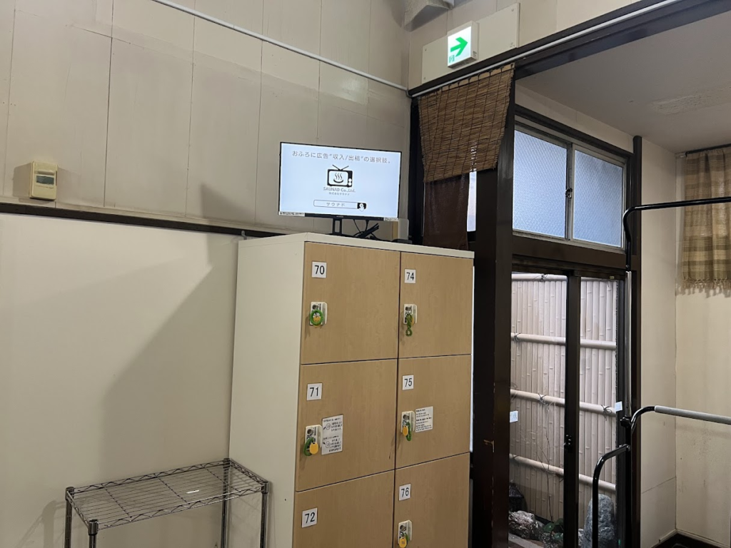 天狗湯に設置しているデジタルサイネージ広告「ふろビジョン」の設置の様子をご紹介します。