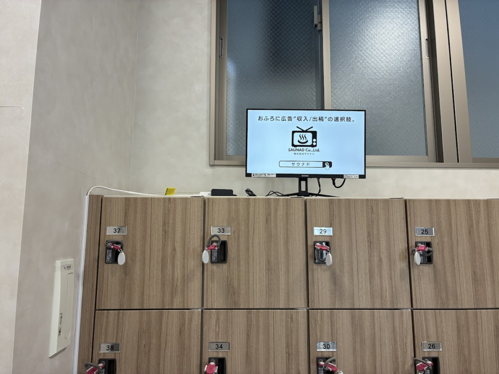 白水湯に設置しているデジタルサイネージ広告「ふろビジョン」の設置の様子をご紹介します。