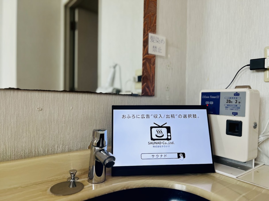 竹の湯に設置しているデジタルサイネージ広告「ふろビジョン」の設置の様子をご紹介します。