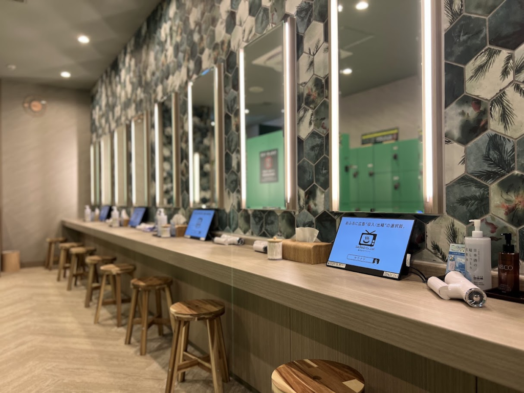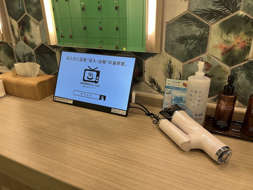 YUBUNE SAUNA PARKに設置しているデジタルサイネージ広告「ふろビジョン」の設置の様子をご紹介します。
